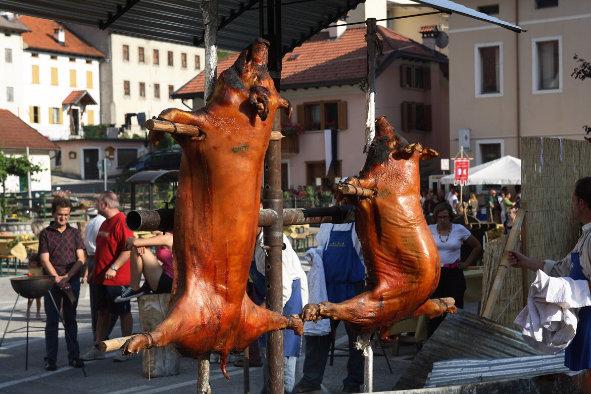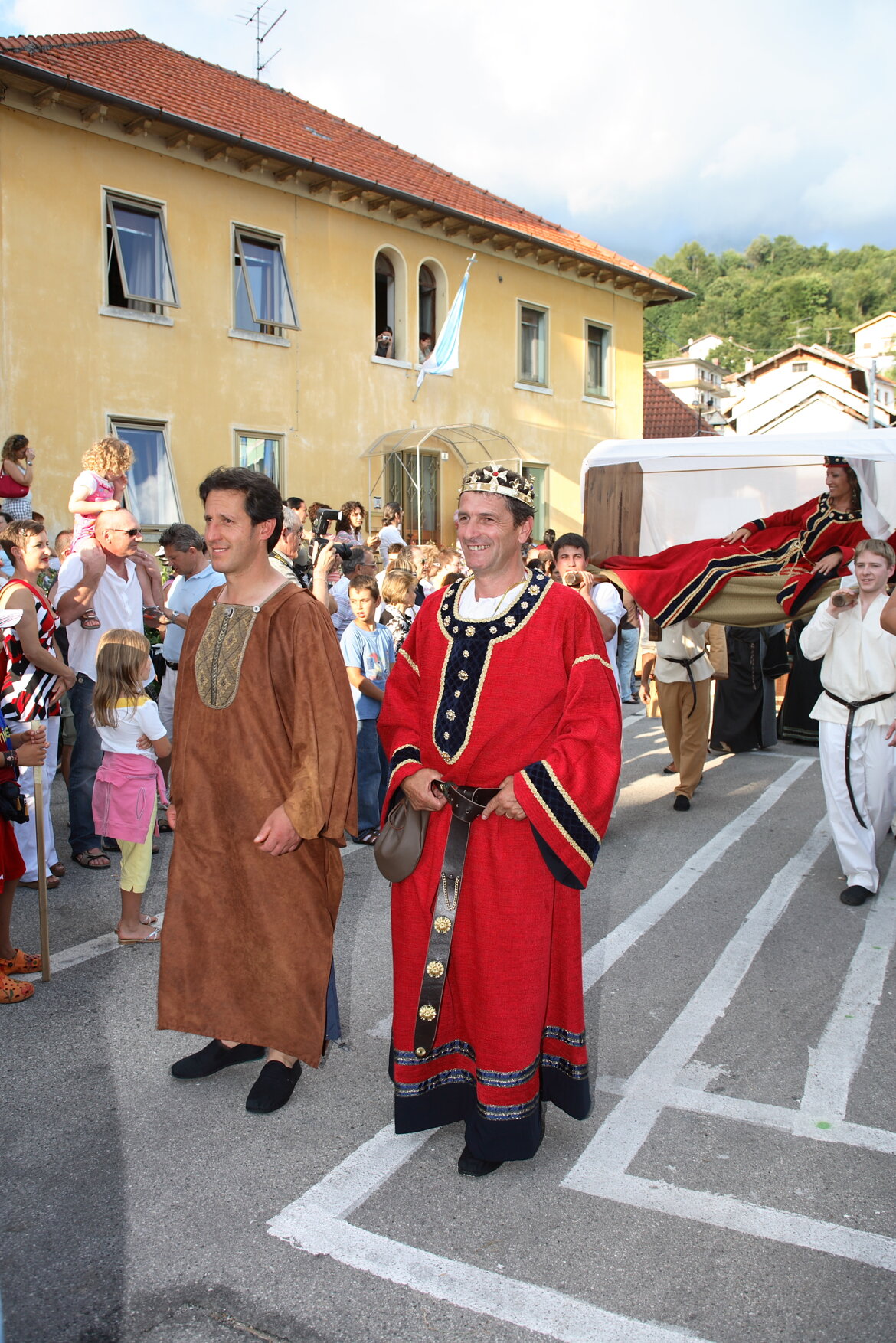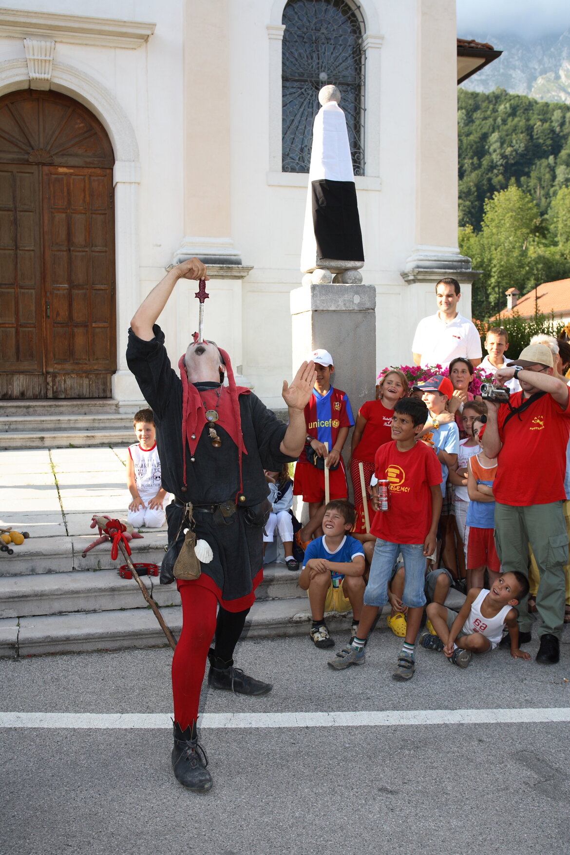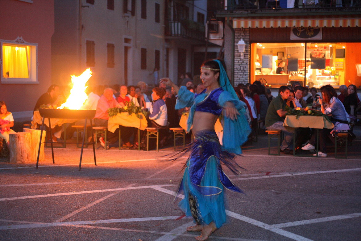 Rievocazione storica per le strade di Lamosano con ricostruzione scenografica in piazza del Municipio dell’antico borgo con mercatino e cantina, cena alla brace con musica e balletti medievali