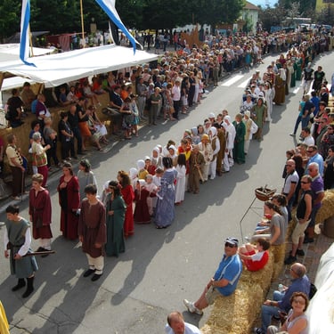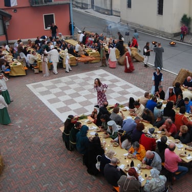 Rievocazione storica per le strade di Pieve con ricostruzione scenografica in piazza del Municipio dell’antico borgo con mercatino e cantina, cena alla brace con musica e balletti medievali.