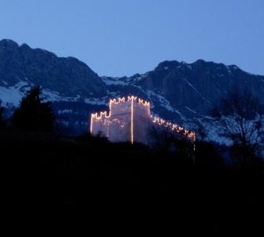 Reinstallazione scenografica temporanea della struttura del castello sul colle omonimo di Alpaos con la partecipazione dei giovani