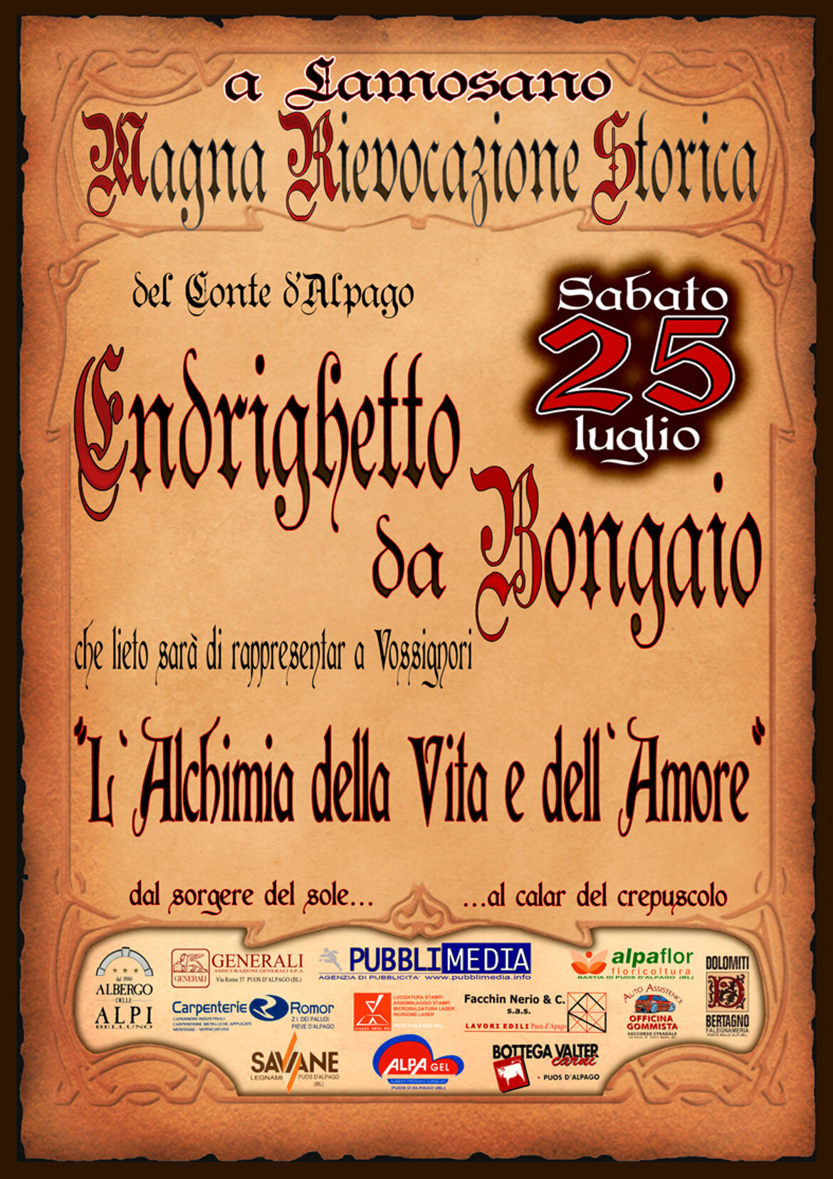 Quarta rievocazione storica a Lamosano d’Alpago, lanciatori di manere dell’Alpago, gruppo storico tamburi di Brisighella (RA) e mercato medievale gruppo storico di S.Zeno (VR), conferenze e attività didattica con le scuole.